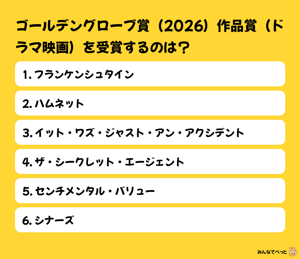 センチメンタル・バリューが本命。静かな人間ドラマが好みで、余韻が残りそう。