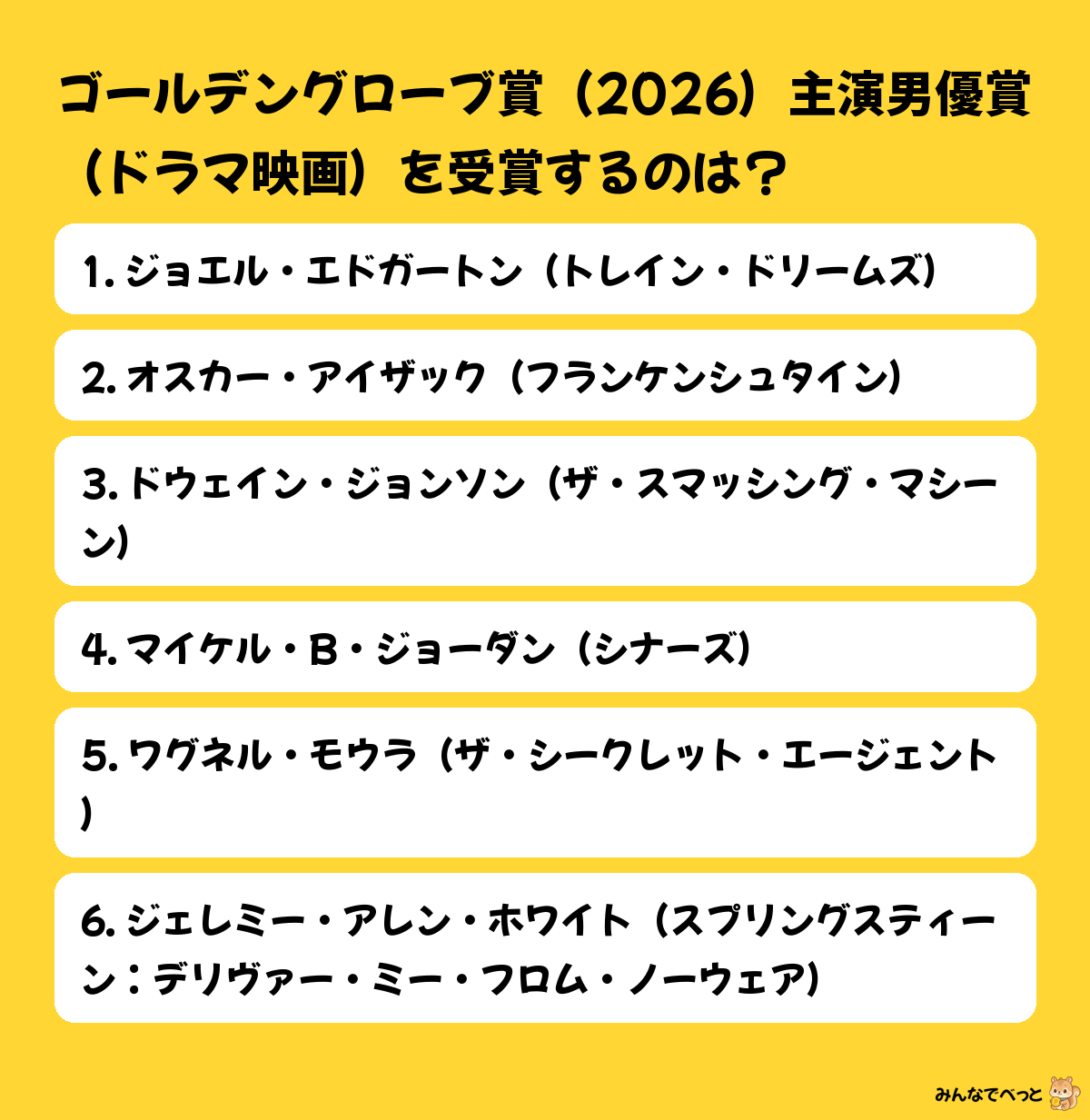 返信:オスカー・アイザック。渋い役どころが好きで、濃い演技に期待。